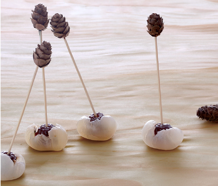 Surligner: | Pics de fruits alimentaires en cônes de pin en bambou,pics en bambou décoratifs de 9 cm |
